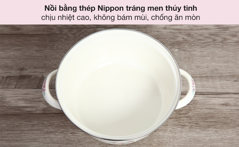 Mặt bên ngoài và bên trong tráng men thủy tinh, chịu nhiệt cao lên đến 850°C, ngăn cản không cho vi khuẩn xâm nhập và phát triển, không bám mùi, chống ăn mòn, sử dụng đảm bảo an toàn cho sức khỏe và làm sạch dễ dàng sau khi dùng.