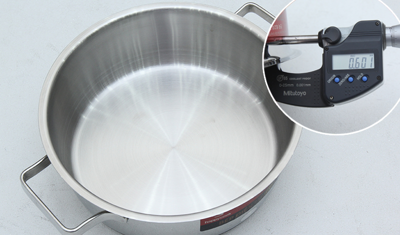 Lớp Inox 201 bên trong không phản ứng với thức ăn, lớp nhôm ở giữa thu nhiệt nhanh, tỏa nhiệt đều, lớp inox 430 bên ngoài có đặc tính nhiễm từ giúp nồi sử dụng được trên bếp từ.