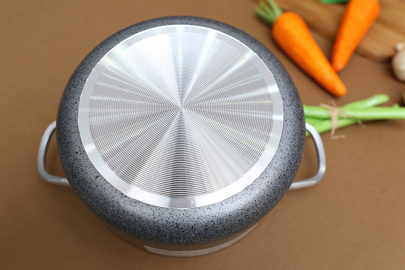 Bề mặt nồi phủ lớp chống dính vân đá sang trọng, đẹp mắt và bền bỉ, dễ vệ sinh, không tiết chất độc hại với cơ thể.