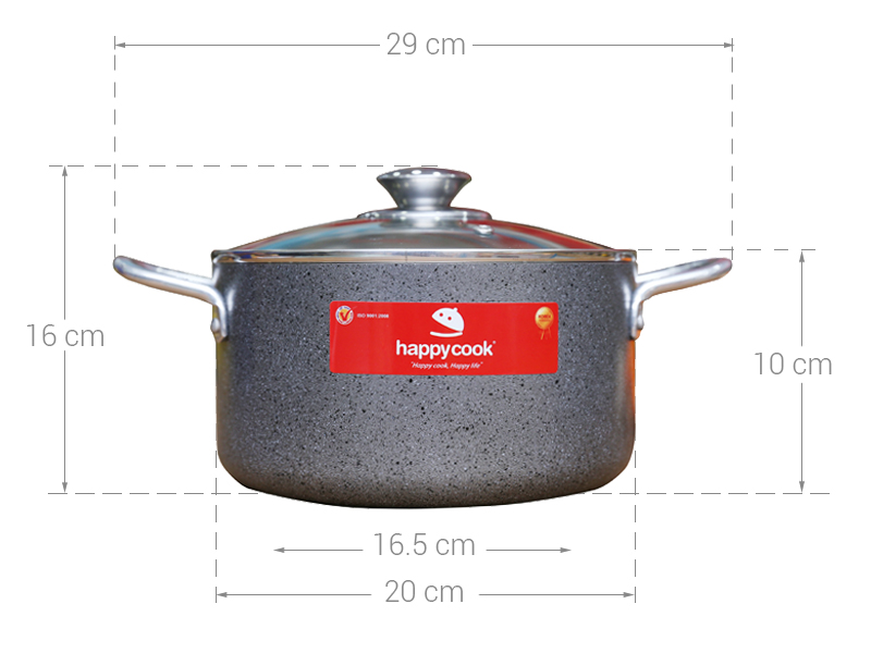 Nồi chống dính vân đá Happycook N20-WA sản xuất tại Việt Nam, sang trọng, bền đẹp, sử dụng tiện lợi và an toàn. Sản phẩm phù hợp với mọi người tiêu dùng.