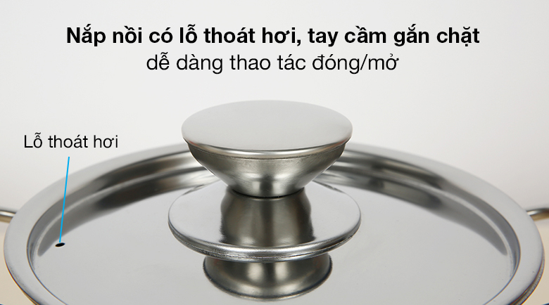 Lỗ thoát hơi trên nắp giúp giảm bớt áp suất tạo ra trong nồi, hạn chế chao đảo vung khi đun sôi.