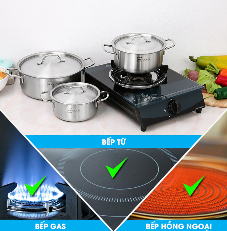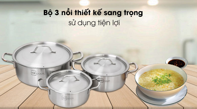 Bộ 3 nồi inox Fivestar HT Cook HT-06DN của thương hiệu Fivestar nổi tiếng Việt Nam, sản xuất tại Việt Nam là lựa chọn mua sắm thông minh cho người nội trợ nhờ thiết kế đẹp, nhiều sản phẩm dễ dùng nấu ăn đa dạng, độ bền cao, giá tốt.