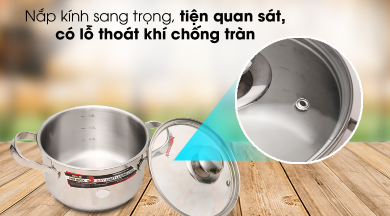 Nồi inox 3 đáy nắp kính 16 cm Happycook N16-NMG