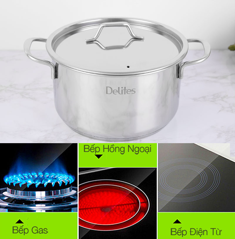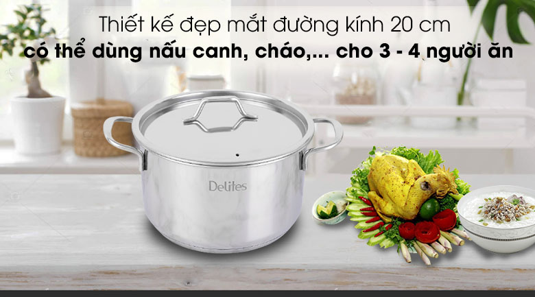 Nồi inox 3 đáy 20 cm Delites NR003-20 sử dụng nấu ăn an toàn, thuận tiện, giá tốt, được người tiêu dùng yêu thích và tin dùng.