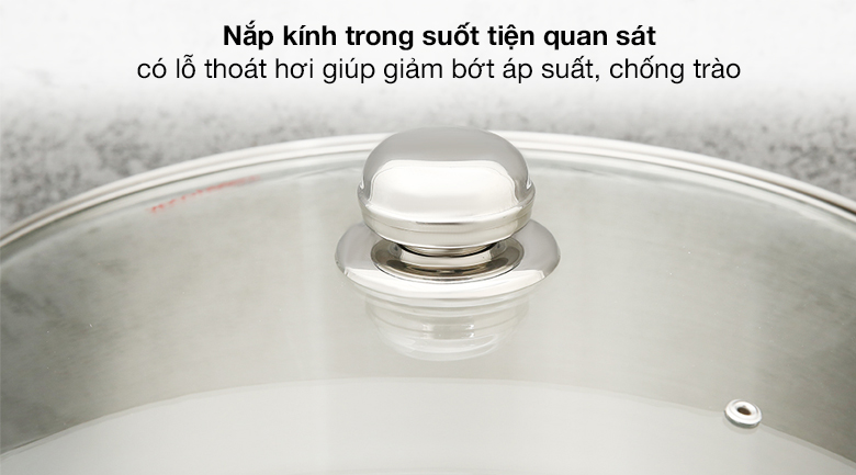 Nồi inox kiểu dáng gọn gàng, thiết kế mềm mại đẹp mắt, tạo điểm nhấn cho bếp nấu.
