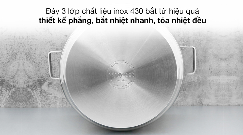 Bề mặt đáy phẳng tăng tiết diện với mặt bếp, giúp bắt nhiệt nhanh, tỏa nhiệt đều.