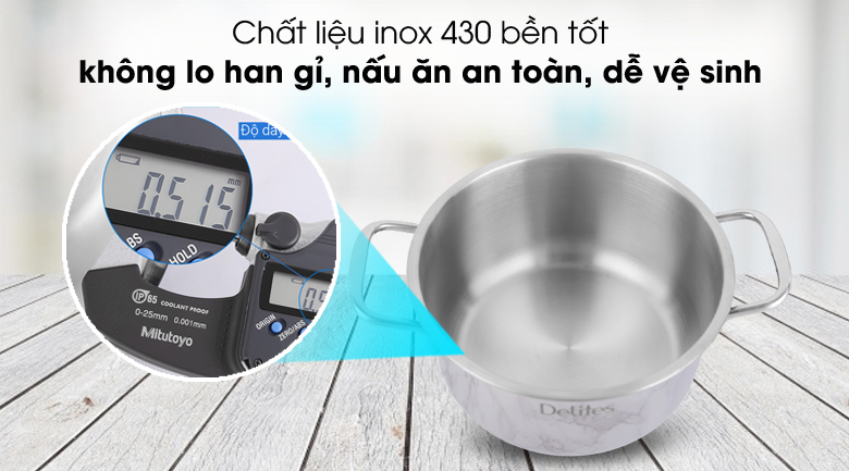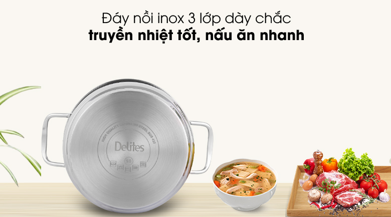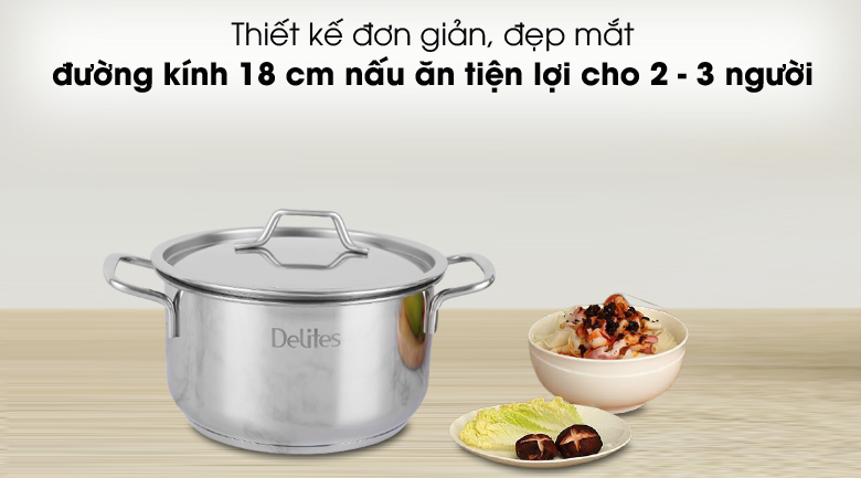 Nồi inox Delites NR003-18 thiết kế đẹp mắt, bền chắc, giá tốt là sự lựa chọn lý tưởng cho nhiều gia đình.
