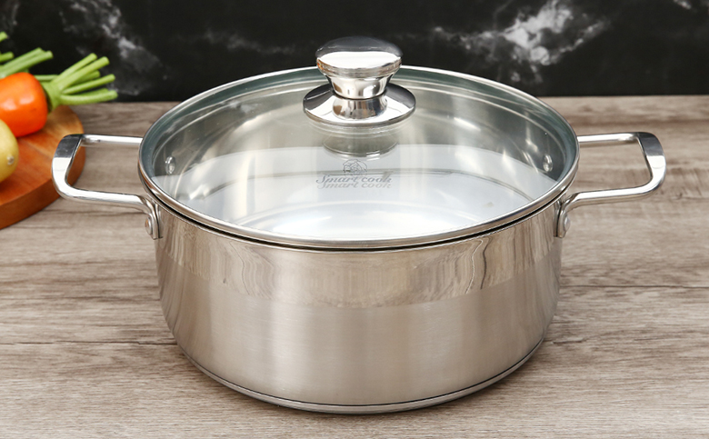 Nồi inox 3 đáy nắp kiếng 24 cm Smartcook SM2402MN thiết kế mang hơi hướng châu Âu hiện đại, có thể luộc gà nguyên con dưới 1.2 kg, chất liệu bền bỉ, nấu ăn an toàn.