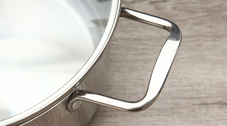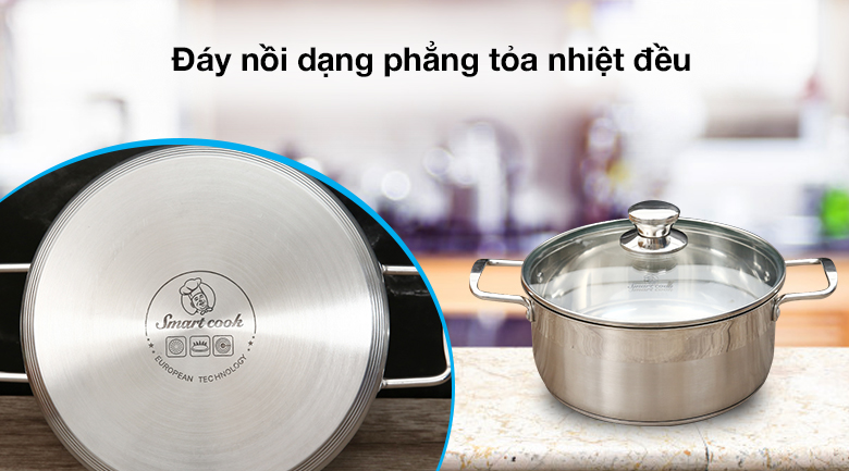 Mặt đáy dạng phẳng, tăng diện tích tiếp xúc mặt bếp cho thức ăn chín nhanh và đều.