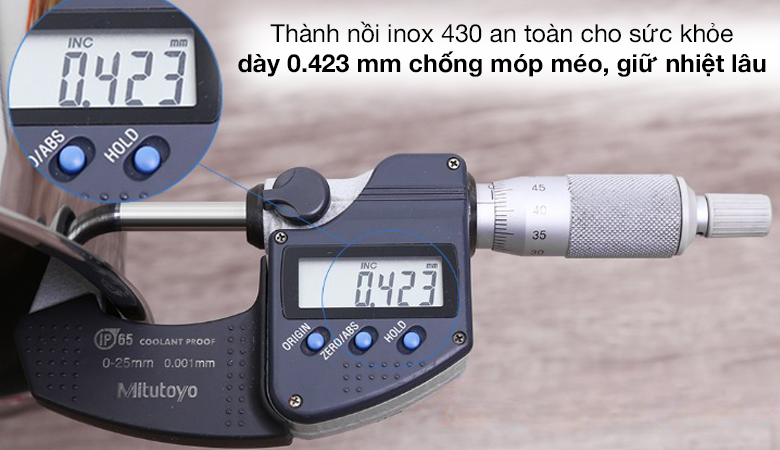 - Lớp inox 430 ngoài cùng giúp bắt từ nhạy, truyền nhiệt nhanh tiết kiệm thời gian nấu nướng.