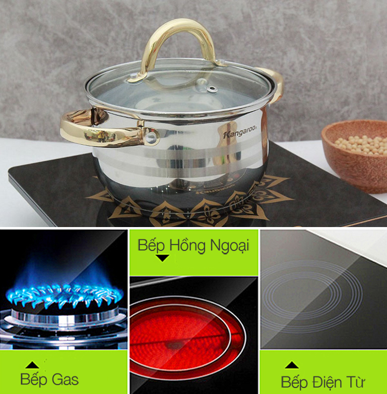 Bộ 3 nồi inox Kangaroo KG157 sử dụng được trên bếp gas, bếp hồng ngoại, bếp từ.