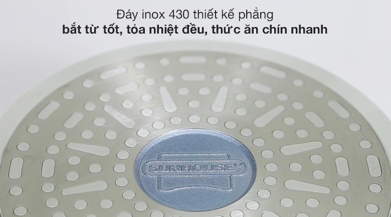 Đáy dạng phẳng tăng tiết diện với mặt bếp giúp tỏa nhiệt đều, thức ăn chín nhanh.