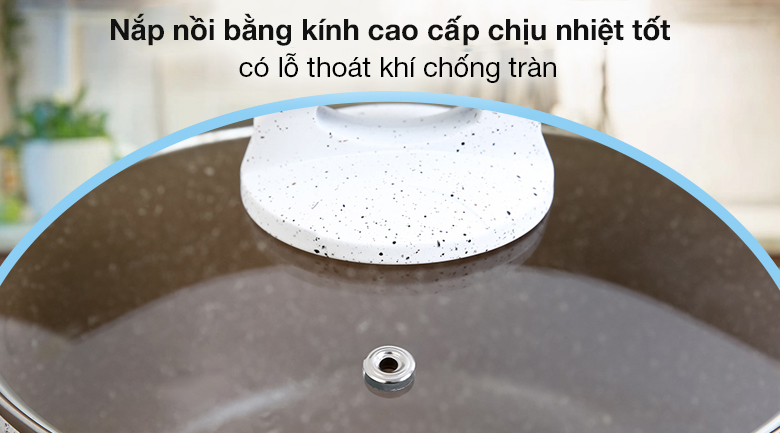Cho bạn quan sát quá trình nấu bên trong dễ dàng mà không cần mở nắp nồi ra. Đồng thời, lỗ thoát hơi giúp giảm bớt áp suất tạo ra trong nồi, nắp nồi không bị chao đảo khi đun sôi và giảm bớt hơi nước làm mờ vung.