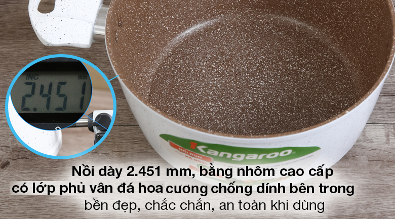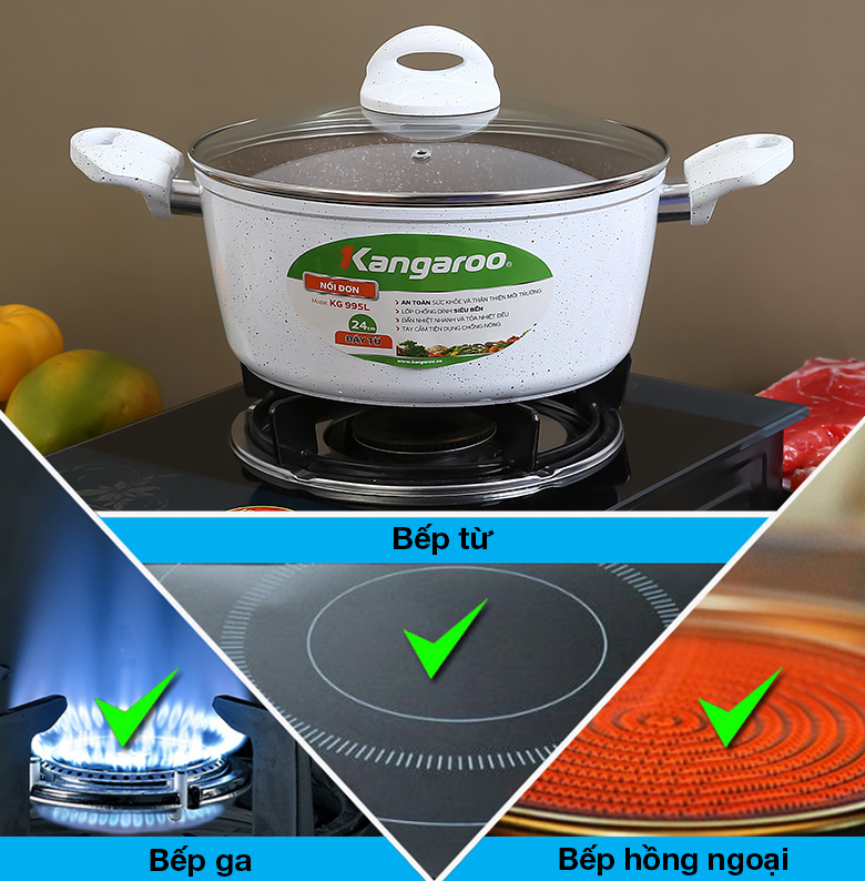 Nồi nhôm chống dính đáy từ 24 cm Kangaroo KG995L có thiết kế đơn giản, chắc chắn, nấu ăn an toàn, tiện lợi, giá cả phải chăng, rất thích hợp cho gia đình bạn.