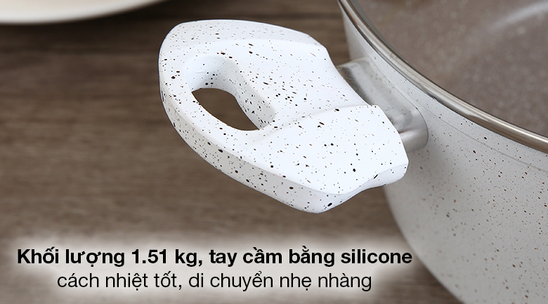 Với chất liệu đó, nồi bền đẹp, hạn chế biến dạng khi va chạm mạnh. Lòng nồi phủ lớp chống dính dạng đá hoa cương tiếp xúc an toàn với thực phẩm hạn chế bám dính vào lòng nồi, giảm tình trạng cháy khi chế biến, làm sạch đơn giản.
