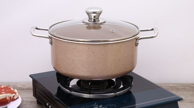 Đáy nồi phẳng tăng diện tích tiếp xúc với mặt bếp, hấp thu và tỏa nhiệt đều.