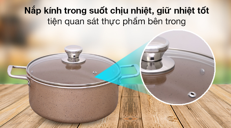 Nắp dày kín tăng khả năng giữ nhiệt cho thức ăn nhanh chín, có lỗ thoát hơi nước chống sôi trào.