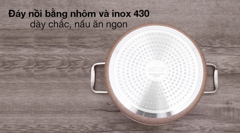 Thiết kế hiện đại, mặt ngoài phủ vân đá sang trọng, màu sắc nổi bật đẹp mắt, thân nồi bằng nhôm A3003 cao cấp bền bỉ.
