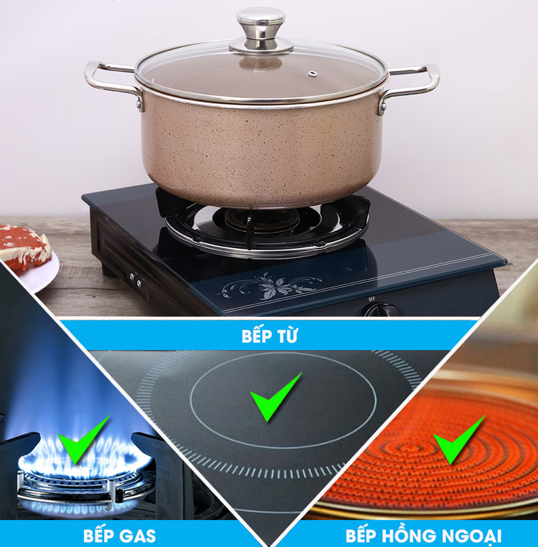 Nấu ăn an toàn, chống dính hiệu quả, xào nấu ngon ít tốn dầu mỡ, dễ làm sạch sau khi dùng.