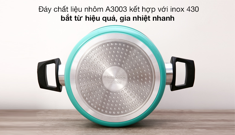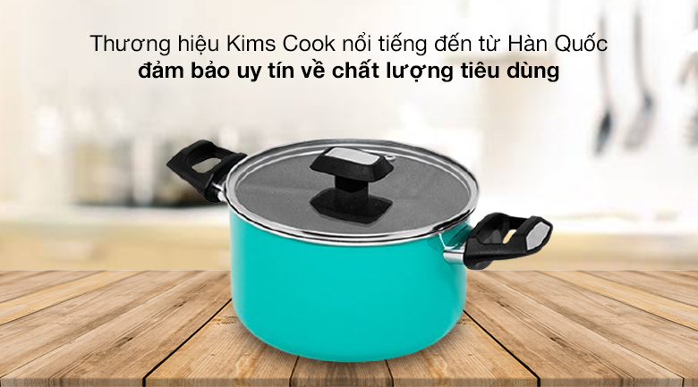 Nồi Kims Cook có màu xanh nhã nhặn với thiết kế gọn nhẹ, hiện đại, phù hợp nhiều không gian bếp.