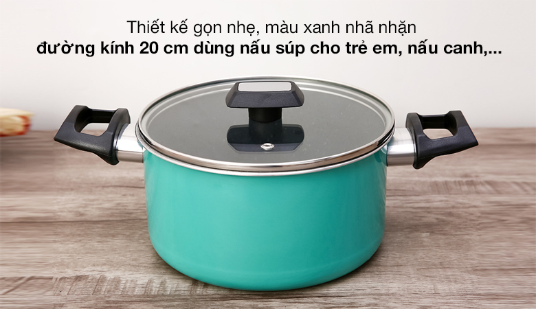 Nồi nhôm nắp kính 20 cm Kims Cook EARM520H Xanh thiết kế gọn nhẹ, hiện đại với màu xanh nhã nhặn, phù hợp với nhiều không gian bếp, đáp ứng tốt nhu cầu nấu ăn cho gia đình 3 - 4 người, đảm bảo về chất lượng được nhiều người tin dùng.