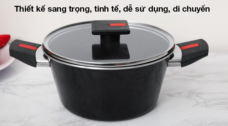 Nồi nhôm nắp kính 20 cm Kims Cook NAB520 của thương hiệu Kims Cook - Hàn Quốc, sản xuất tại Việt Nam, đường kính 20 cm, chất liệu hợp kim nhôm A3003 phủ chống dính Ceramic an toàn, dùng được trên mọi loại bếp, lựa chọn đúng đắn cho gia đình hiện đại.