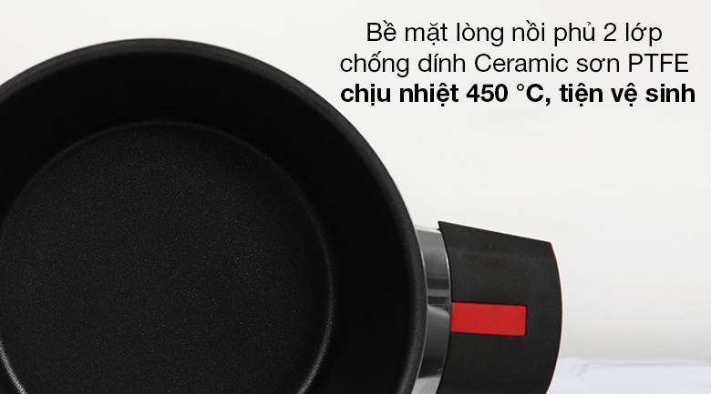 Thiết kế đúc nguyên khối giúp đáy không bị phồng đảm bảo độ phẳng tối đa, tiếp xúc với mặt bếp tốt nhất.