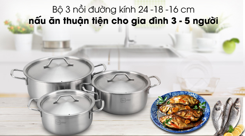 Bộ 3 nồi inox Fivestar FV-06DN bền tốt, tiện dụng, giá rẻ, thương hiệu uy tín, lựa chọn tiêu dùng tốt cho gia đình.