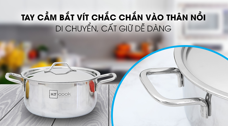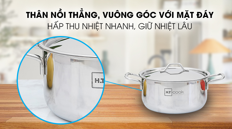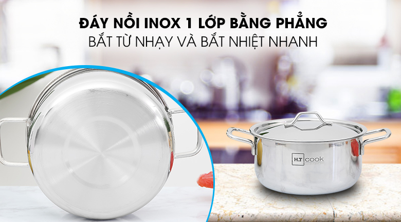 Nồi inox 1 đáy HT Cook N20-1DHT 20 cm sang trọng, nấu ăn nhanh, an toàn tiện dụng với mọi nhà.