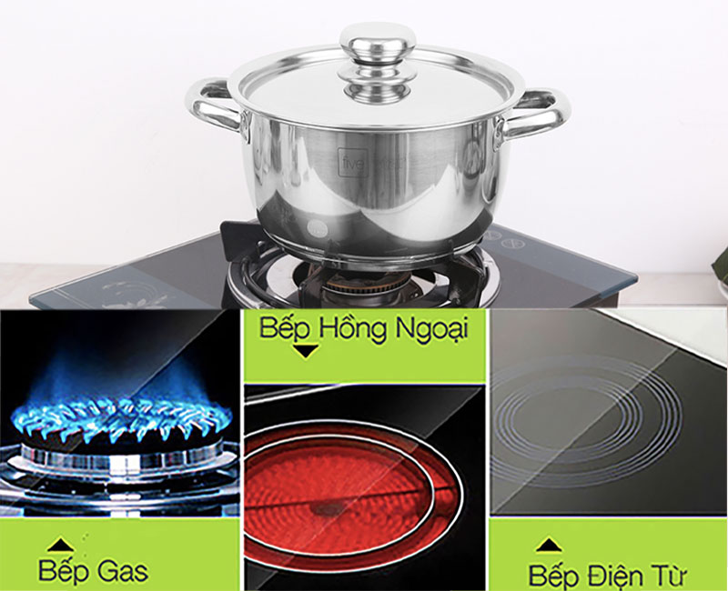 Nồi inox 3 đáy 20 cm Fivestar FSN20001, thiết kế đẹp mắt với chất liệu inox 430 nhẹ, xứng đáng là người bạn đồng hành của các bà nội trợ.
