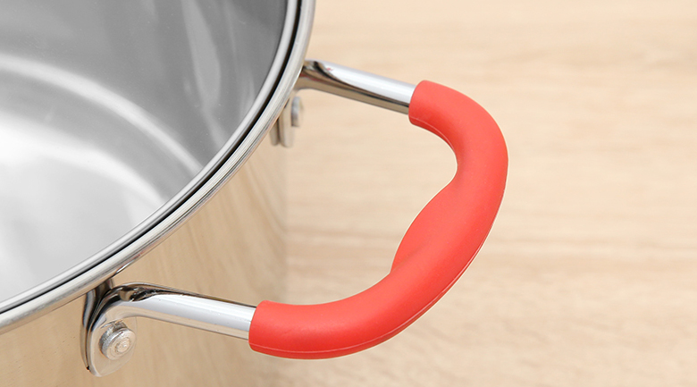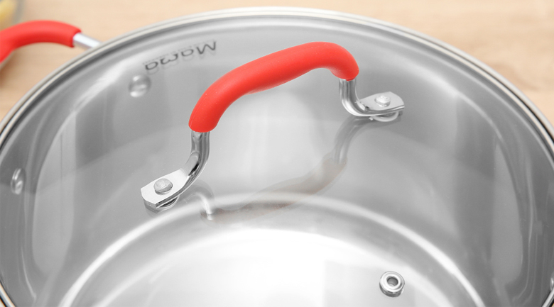 Quai núm sản phẩm được làm bằng inox tán đinh chắc chắn, chịu lực tốt. Nhờ được bọc silicon cách nhiệt, dễ dàng di chuyển nâng/nhấc mà không lo bị bỏng nhiệt.