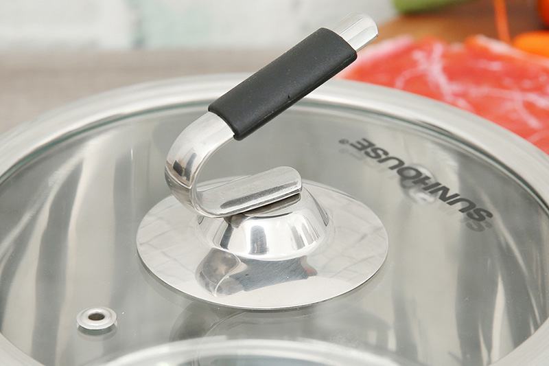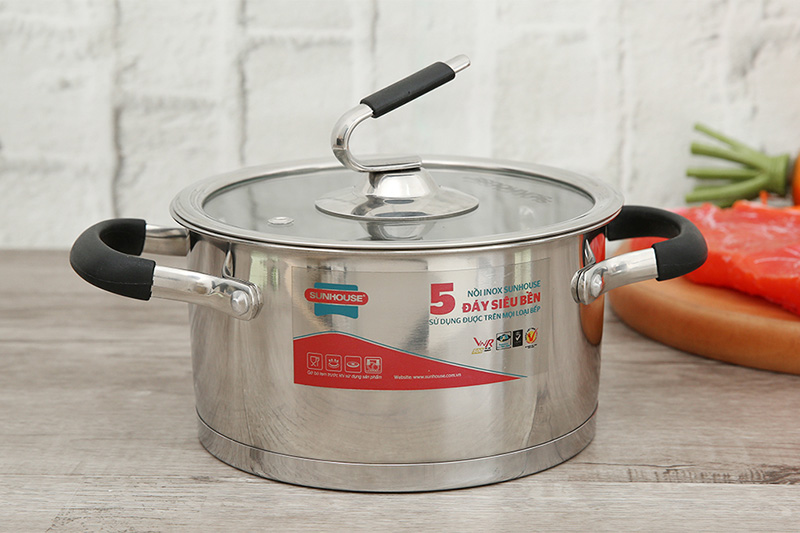 Nồi inox 5 đáy 16 cm Sunhouse SHG24316 nhỏ gọn, bền tốt, cao cấp, sang trọng, sản phẩm tuyệt vời cho nấu ăn gia đình.