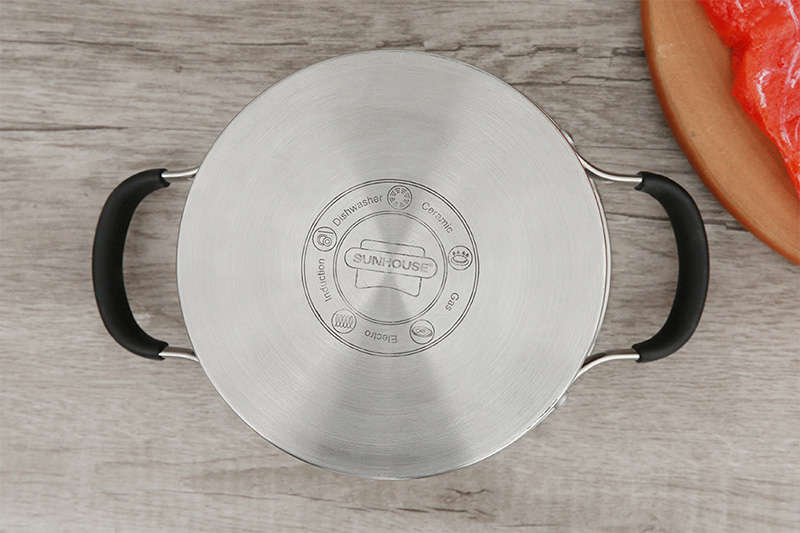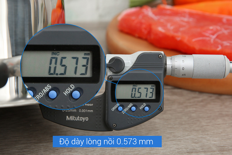 Cấu tạo dày dặn, chắc chắn, gia nhiệt nhanh, truyền nhiệt đều, nấu ăn không lo cháy khét hay vàng ố mặt inox như nồi 1 đáy thông thường.
