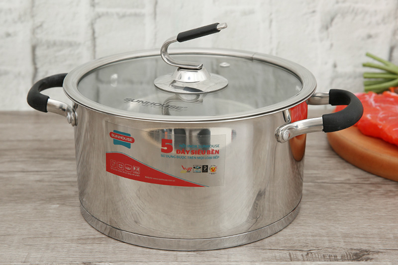 Nồi inox 5 đáy 20 cm Sunhouse SHG24320 đẹp, bền, chất lượng cao dùng an toàn sức khỏe, gia dụng cao cấp cho bếp gia đình.