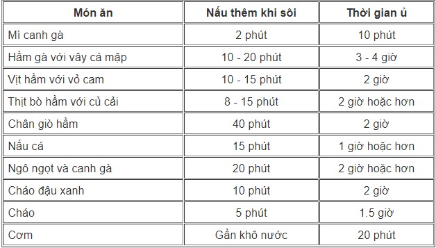 - Khi chế biến các món như: xương, thịt bò hay bánh tét,... cần thời gian ủ lâu hơn, sau khi ủ khoảng 2 giờ bạn có thể đun sôi nồi ủ khoảng 5 - 7 phút lần nữa, sau đó tiếp tục ủ.