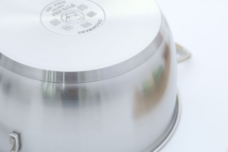 Đáy nồi dập 3 lớp (inox 430 – nhôm – inox 430) với lớp nhôm ở giữa có khả năng truyền nhiệt tốt, lớp trong cùng và ngoài cùng của đáy là chất liệu inox 430 cao cấp, nhiễm từ, ít bị oxi hóa, độ bền cao.