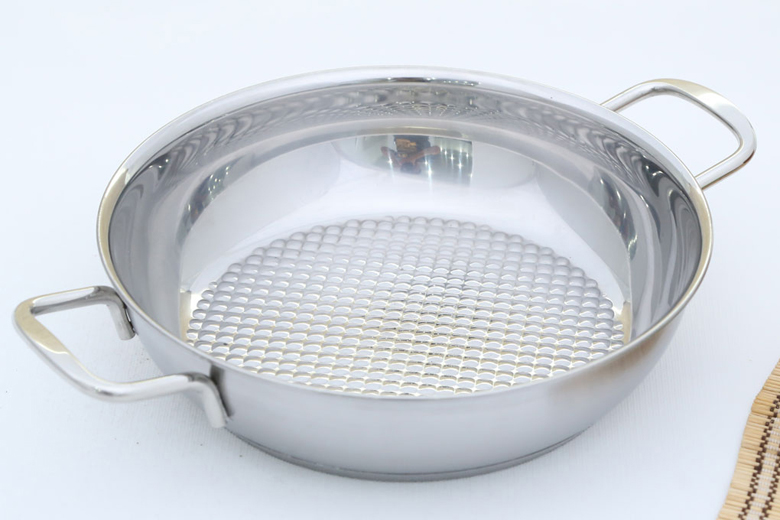 Lòng chảo thiết kế carô đặc biệt giúp chiên xào thực phẩm thuận tiện, dễ dàng.