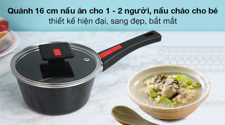 Quánh nhôm chống dính nắp kính 16 cm Kims Cook NAB316 mang đến gian bếp gia đình một gia dụng tốt, thiết kế sang đẹp, chất liệu cao cấp bền bỉ, nấu ăn an toàn, tiện lợi, thương hiệu uy tín rất đáng tin chọn.