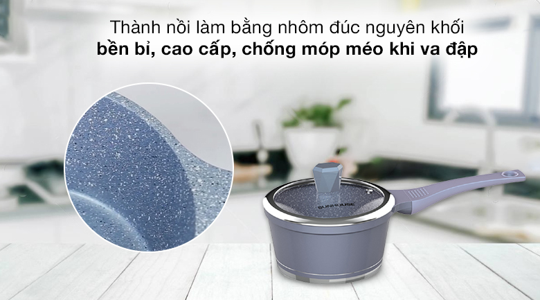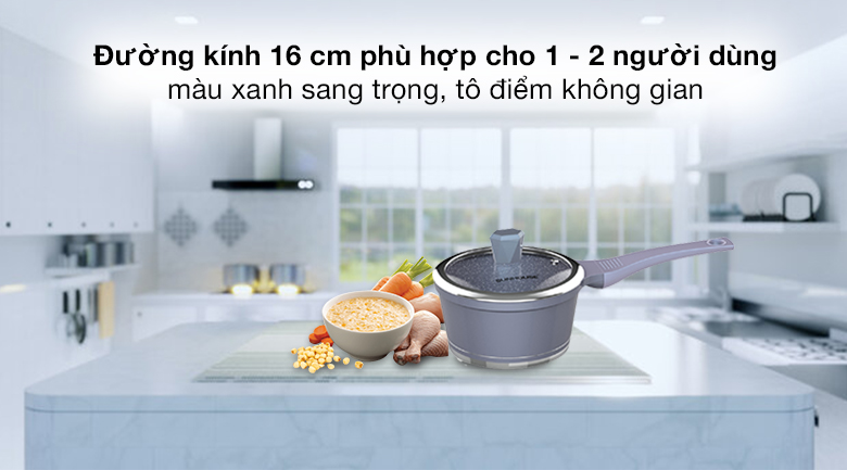 Quánh nhôm chống dính nắp kính 16 cm Sunhouse SHG3116MMA phủ chống dính đá hoa cương bền bỉ, kháng khuẩn, an toàn, kích thước nhỏ gọn dễ di chuyển và cất giữ, tay cầm cách nhiệt chống bỏng khi cầm nắm, phù hợp cho gia đình 1 - 2 người.