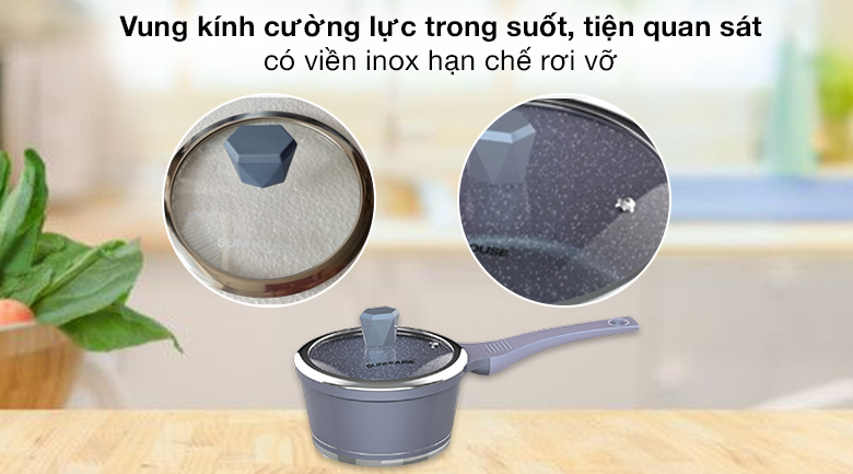 Chịu nhiệt và lực tốt, có viền inox hạn chế rơi vỡ. Nắp còn có lỗ thoát hơi giúp giảm áp suất trong quánh khi sôi, không làm bấp bênh và mờ nắp.