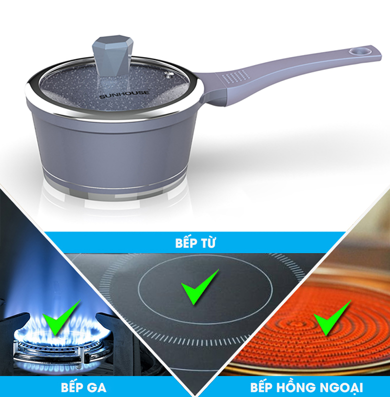 Quánh nhôm chống dính nắp kính 16 cm Sunhouse SHG3116MMA