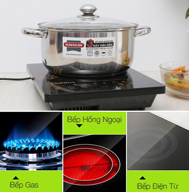 Nồi Inox 3 đáy Sunhouse SH22128 sang trọng, bền đẹp, nấu ăn tiện dụng. Sản phẩm thương hiệu uy tín cho người tiêu dùng yên tâm chọn dùng.