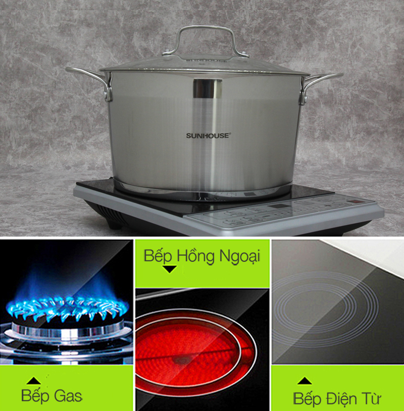 Nồi inox Sunhouse SH779-28 thiết kế thời trang, hiện đại, thuộc thương hiệu nổi tiếng Việt Nam.