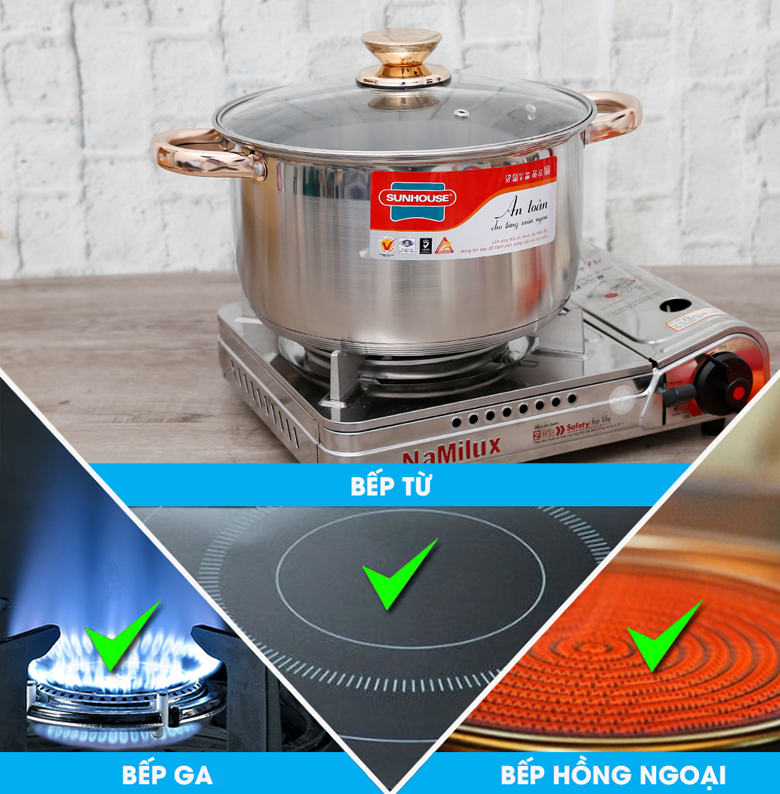 Nồi inox 5 đáy Sunhouse SHG24224 24 cm thương hiệu Sunhouse uy tín, chất lượng giá cả phải chăng là sự lựa chọn đáng cân nhắc cho các bà nội trợ.