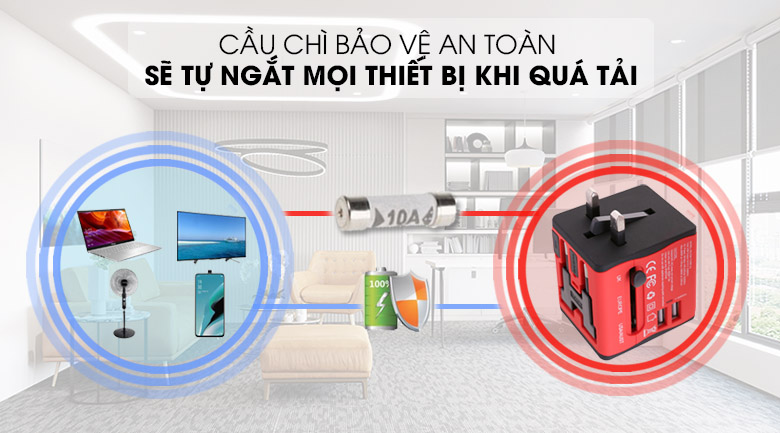 Ổ cắm được trang bị cầu chì dự phòng, cầu chì an toàn giúp bảo vệ thiết bị sử dụng và sẽ tự ngắt khi quá tải, nguồn điện không ổn định.