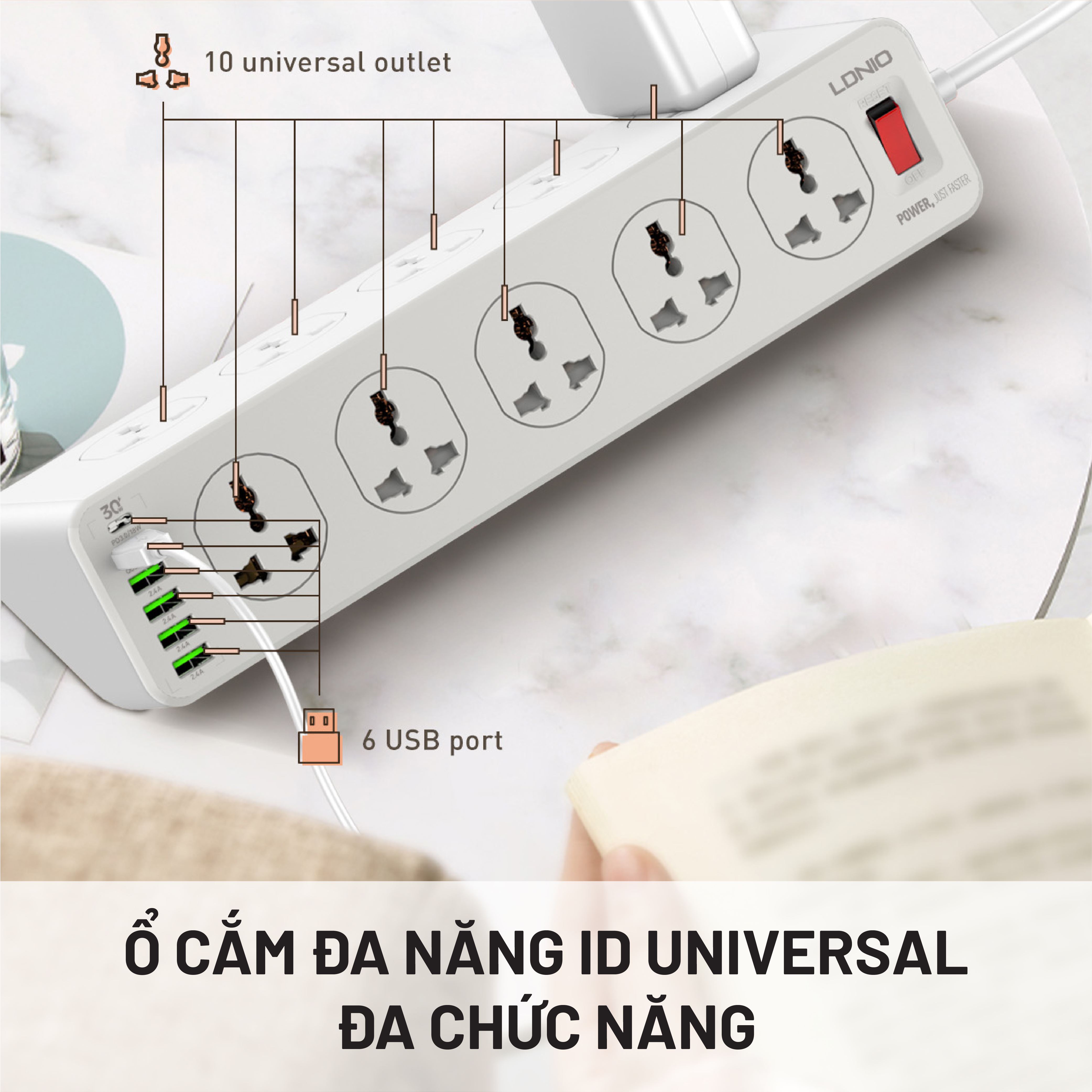 Ổ cắm điện Ldnio 10 lỗ 6 USB 2m SC10610 là lựa chọn hoàn hảo cho gia đình hoặc văn phòng có nhu cầu sử dụng nhiều thiết bị cùng lúc. Thiết kế gọn gàng, tiện ích đa năng và khả năng bảo vệ an toàn vượt trội, sản phẩm xứng đáng là trợ thủ đắc lực trong cuộc sống hiện đại.