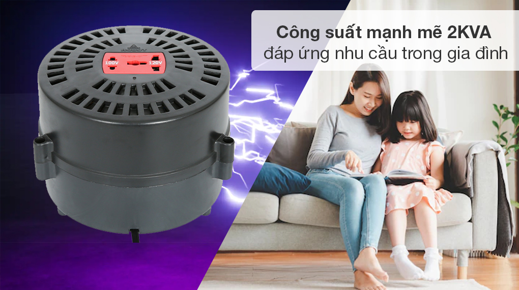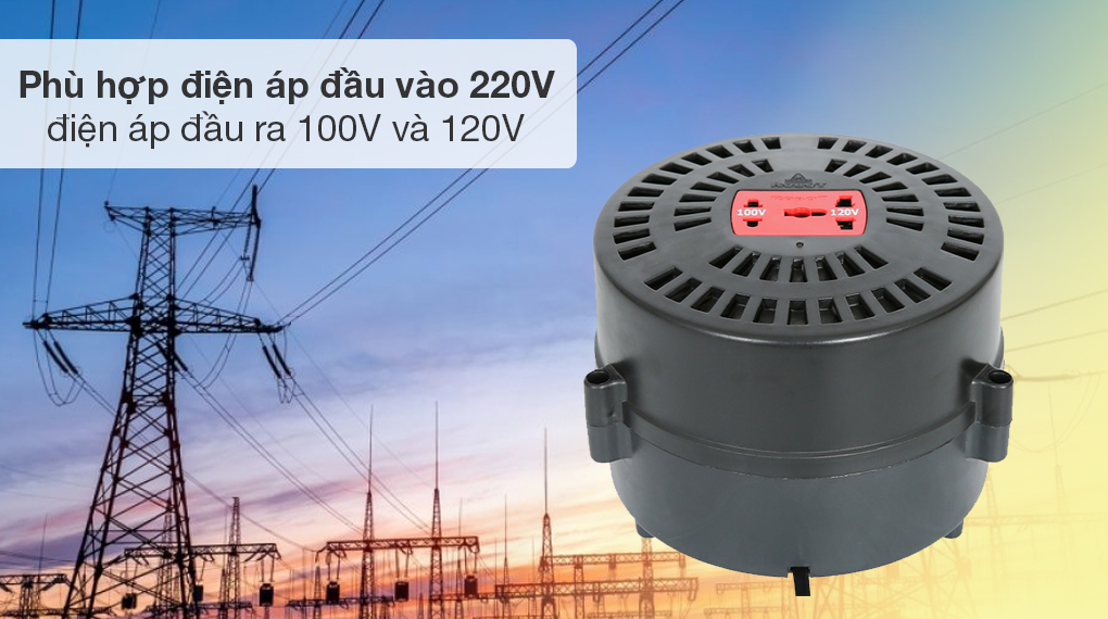 - Máy biến thế cho dòng điện 1 pha, giảm hiệu điện thế để bạn dùng các thiết bị công suất nhỏ như nồi cơm điện, loa, tivi,... an toàn, kéo dài tuổi thọ và tiết kiệm điện hơn.