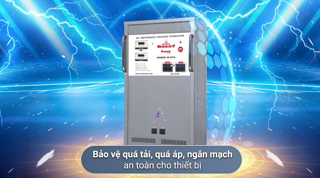 - Nhờ trang bị công tắc tự động, ổn áp Robot có khả năng tự ngắt nguồn điện khi máy hoạt động quá tải, đảm bảo an toàn cho người dùng và các thiết bị điện khác trong quá trình sử dụng, tránh những tình huống chập điện hoặc cháy nổ gây nguy hiểm.