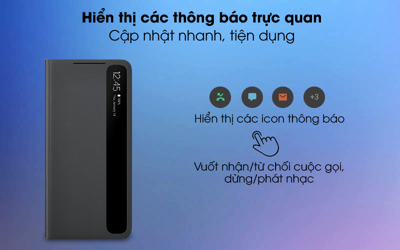 Không chỉ có thể, bạn còn có thể dừng hoặc phát nhạc, hay nhận và từ chối cuộc gọi trực tiếp trên bao da mà không cần mở nắp thao tác từ màn hình cảm ứng, thêm nhanh chóng, tiện lợi và bảo vệ hiệu quả hơn cho điện thoại.
