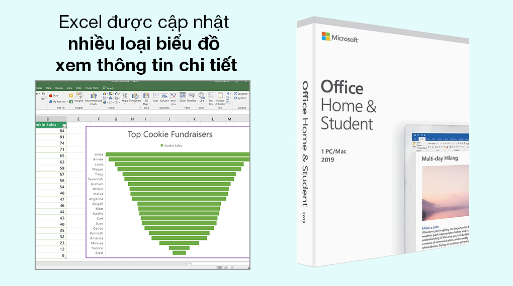Word, Excel, Powerpoint được cập nhật giao diện màu đen quan sát thuận tiện, Word có nhiều tính năng mới với mô tả bằng âm thanh, chuyển từ văn bản qua giọng nói,... Trong khi Excel tích hợp thêm nhiều loại biểu đồ cung cấp thông tin rõ ràng, chi tiết, để bạn xem tài liệu hiệu quả hơn.